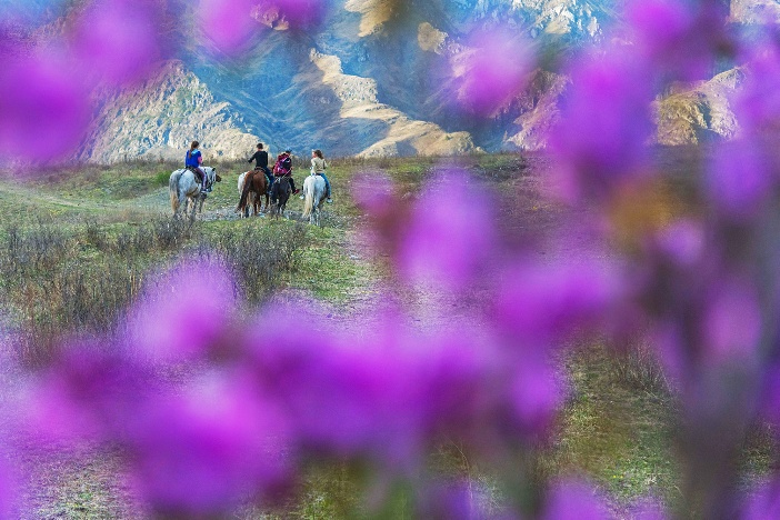 Далее отправимся в царство цветущего маральника. Вас ждёт треккинг в ущелье Горных Духов Че-Чкыш — примерно час пути с подъёмом на смотровую площадку, откуда открываются захватывающие виды.