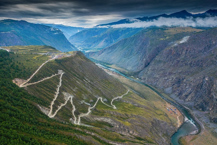 Перевал Кату-Ярык — кульминация поездки. Спустимся в Чулышманский каньон по зигзагообразному серпантину. Со смотровой площадки откроются головокружительные виды на ущелье и каскады водопадов.