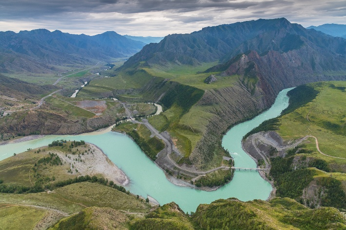 Слияние Чуи и Катуни. Первая остановка — место встречи двух великих рек. На смотровой площадке будет время для фотографий и созерцания.
